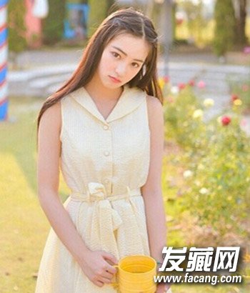 夏天长发女生必学的一款简单夏日扎发设计,披肩长直发自然垂顺,中分直发配合刘海编发设计露出额头清爽甜美,很适合妹纸们约会打理的气质发型。