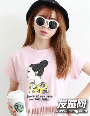 时尚的棕黄色染发颜色可是最能衬托出女生肤色的白皙红润感了,再配合简单的空气感刘海形式的长直发同样可爱吸睛。