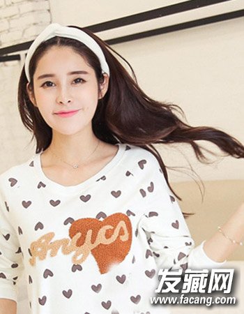 简单清爽的无刘海造型设计将女生精致的五官完美的呈现出来,再配合这种低调的深棕色染发颜色与飘逸的长发同样很是萌妹纸的甜美可爱感。