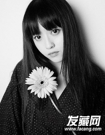 一款日系的中长直发发型,甜美的平刘海与中长直发发搭配起来显露出别致的时尚感来,而且柔顺的发丝自然有气质感,纯自然的发色甜美十足。