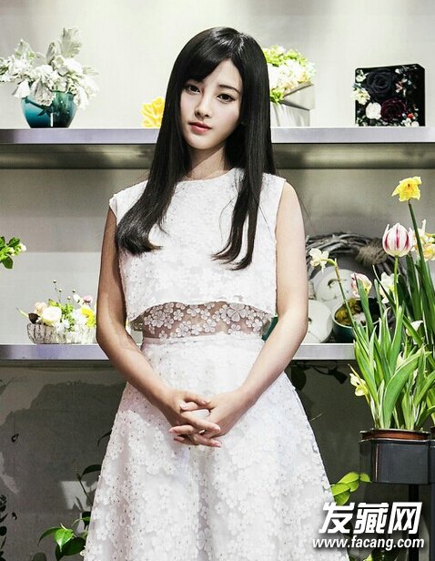 鞠婧祎的颜可以用清新脱俗来形容,但她的脸型却并不够好看,而这款发型刚好可以弥被她的脸部缺点,碎刘海小清新,长直发也是小清新+小甜美,刘海和两侧的头发刚好修颜。