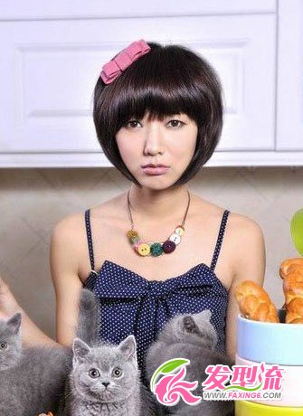 这款齐刘海短发则显得更加甜美,犀利的个性被温婉地收住,给人以亲切温柔的感觉。两颊出层层向内卷的发丝包裹住你的脸庞,达到小脸的效果。
