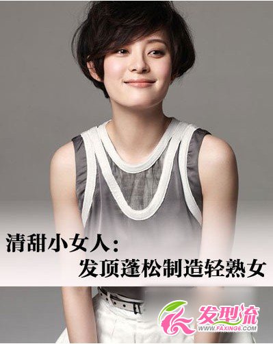 变身清甜小女人,发顶略微的蓬松感是关键,太服帖或整体蓬松都不是高阶感。发顶蓬松制造轻熟女。