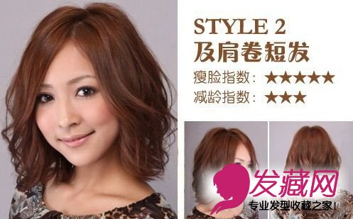 瘦脸短发发型:及肩卷短发