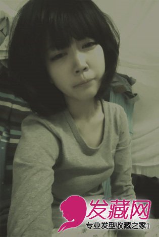 简单凌乱的中短发的波波头发型。无辜可爱的小女生,有一种非主流的感觉。这种比较蓬松大颗的波波头,是很能显脸瘦的哦!