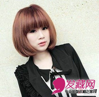 齐刘海的短发bobo头一直深受时尚女生们的喜爱,这一款超可爱的短发bobo头显得额头十分饱满而且不失厚重感,配上这个颜色极具时尚气息,发尾微微内扣,十分甜美可爱,极具修颜瘦脸效果,顿时放大你的双眼,鹅蛋脸尽显无遗,也是减龄必备哦,爱美的MM还在犹豫什么呢?