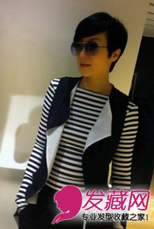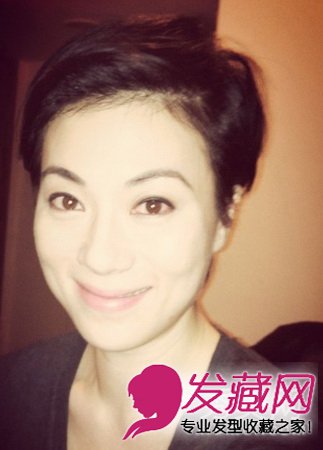现实中的佘诗曼也是酷感十足三七分短发,只能说这个发型最近真的很红。