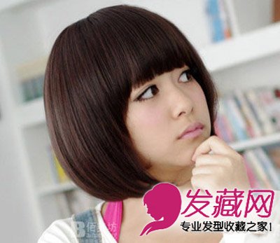 看到这样的一款波波头短发,应该会有很多的妹子们喜欢吧!前面修剪齐的刘海,看上去就是增添了甜美、可爱度,内扣的短发尾,正好将脸型修饰了,瓜子脸轻松打造!