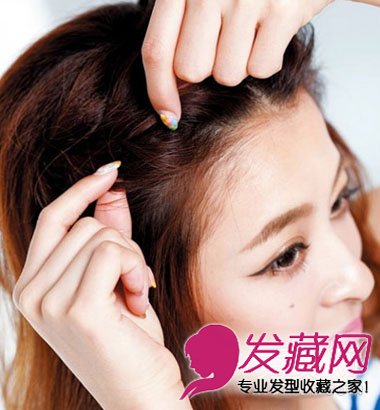 step3:再调整前方的辫子,覆盖住之前扭转的发夹,完成编发。