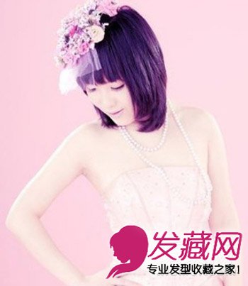 浪漫唯美的短直发发型,碎发的齐刘海包围脸部轮廓,达到完美修饰脸型的效果。头顶鲜花的装扮营造成熟、冷静的感觉,是短发公主头发型的最佳选择。