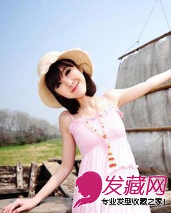 甜美清新的齐肩发型,齐刘海很好的修饰脸型,穿上粉色的吊带裙配上白色的草编帽,拥有此发型让你同时拥有学生时代的气息。