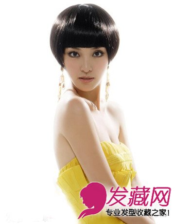 这款锅盖头有着浓浓的沙宣短发的味道,很适合追求时尚的MM,黑色的发丝,自然时尚,刘海及眉的长度,营造了一个瓜子脸的效果,这款发型,对脸型要求很高哦。