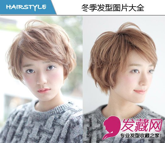 发型点评:棕白色短卷发衬托出水润白皙的皮肤,凌乱的短卷发俏丽清新。