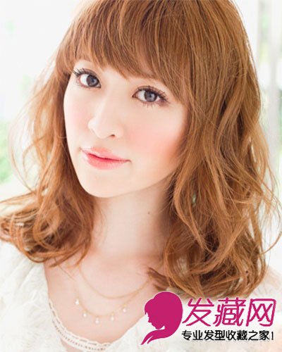 这款斜碎刘海贴脸蓬松梨花头样式简单却非常突显女孩子文静的气质,斜碎的刘海刚好掩盖了光露的额头而且蓬松的卷发显得发感十足, 显得清春靓丽。