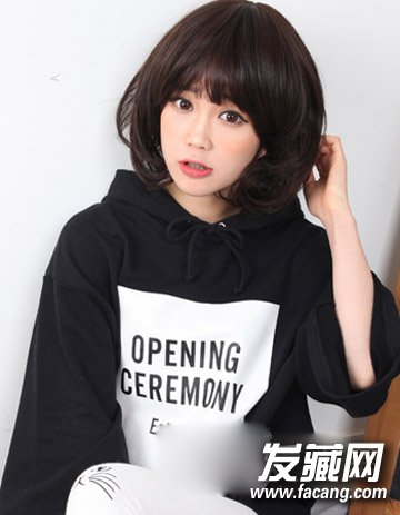 可爱的蓬松短发发型,不仅简单而且时尚,整个造型如同一顶帽子一般勾勒出无比的时尚气质来,加上发尾 的小卷灵动有个性。