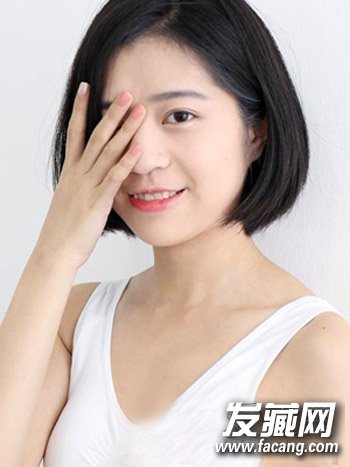 OL日常最常用的一款清爽韩式短发,乌黑发丝莹亮光泽,偏分发设计的长斜刘海很有修颜的效果,搭配清爽的短发设计更显利落