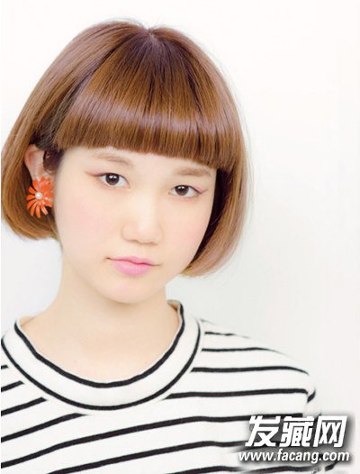 发型点评:一丝不苟的齐刘海整齐靓丽,露出眉毛清爽干练。波波头发尾整齐的内扣,甜美而修颜。