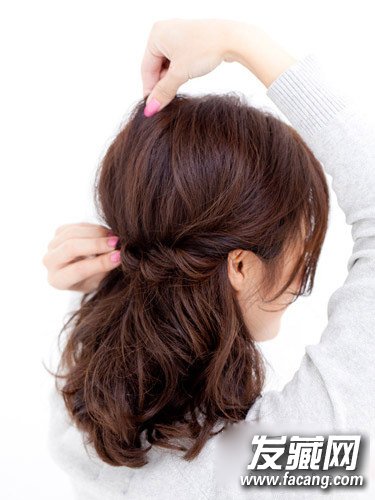 step4:另外一侧重复同样步骤,再将头顶的头发拉扯蓬松即可。