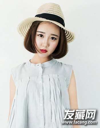 简单的中分无刘海造型设计不仅清爽感十足,还能将女生精致的五官与饱满的额头全都呈现出来,再配合低调的深褐色染发与简单的内扣短发设计更添十足的清新田园风。