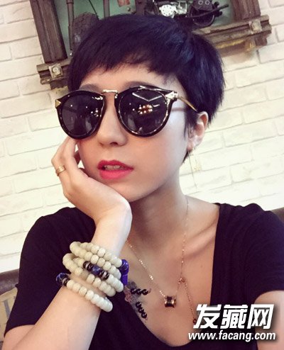 杨子晴短发发型,好似男生头的露耳短发给人一种很时尚帅气的感觉,短刘海加上超短发,时尚吸睛,搭配墨镜酷劲十足。