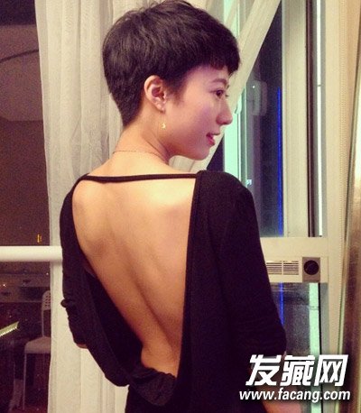 不要以为剪短发就没有女人味,杨子晴这样的精灵短发造型可是很挑战气质的,穿上露背礼服,顿时性感指数爆表。