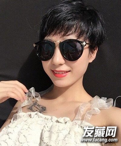 短发蓬松一点更加时尚减龄,这样一款超短发发型,短刘海露出脸部轮廓,清新搭配还有点可爱感觉。