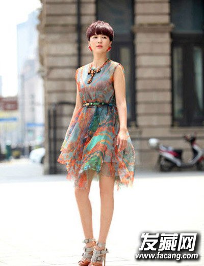 时尚写真造型,短发也可以很性感和优雅,齐刘海短发透着一种淡淡的复古感,雪纺连衣裙秀美腿。