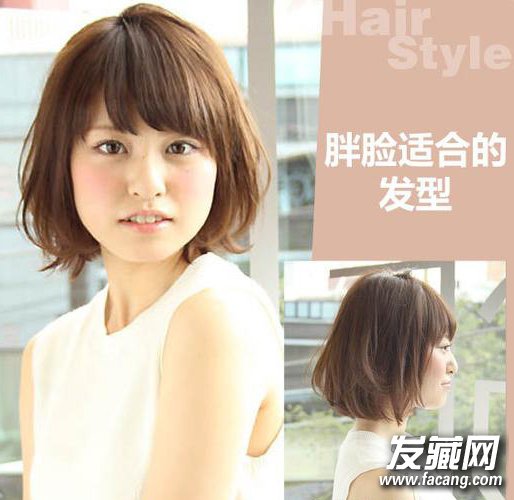 这款波波头短发的齐刘海及眉,也可以斜拨,头发烫蓬松,发尾微卷内扣,脸颊两侧的头发能帮助修脸,适合圆脸MM。