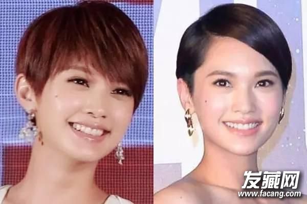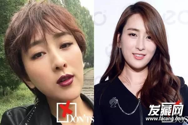 黄金定律说她不适合短发不无道理,瞧,将头发剪短到鬓角位置后(左图),原本就呈竖鹅蛋的脸型,被显衬得更长了。而拉抻发丝的长度后(右图),脸型的视觉重心有效提升,长长脸得到有效缓解。