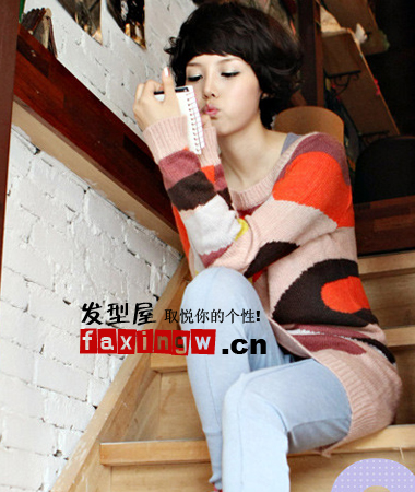 帅气加时尚的短发发型正好符合韩国小女生特色,斜的齐刘海可以将眼睛衬托得更大更有神哟,整体造型都体现着干练气质的女人韵味。