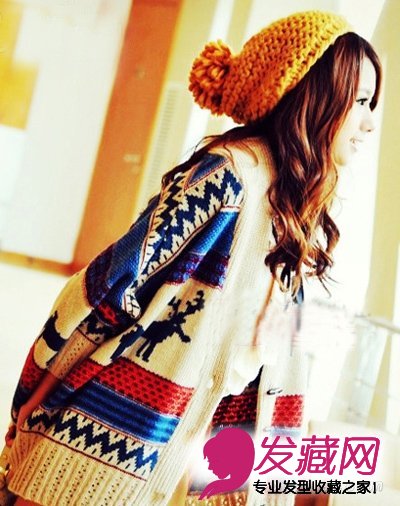 修脸的斜刘海搭配大波浪卷发,显得很优雅甜美,随性搭配一顶自己喜欢的帽子会更加保暖出众哦!