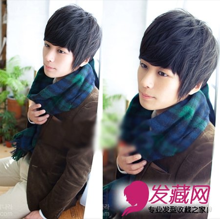 标准的美男发型,黑色中长发清秀帅气,光滑的刘海突出精美的瓜子脸,长长的鬓角将瓜子脸凸显得更完美。搭配各种色调组合的格子围巾更加英俊帅气呢!