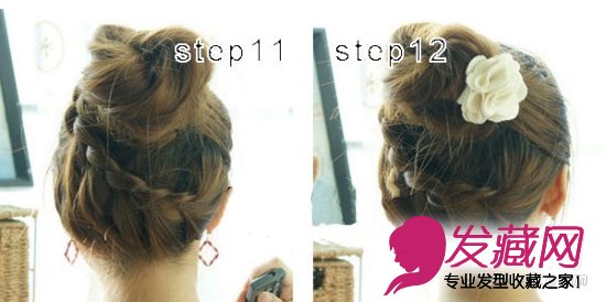 如果感觉蜈蚣辫不牢固可以多用几个发卡进行固定,最后再别上自己喜欢的发饰一款优雅的韩式编发盘发就大功告成了!