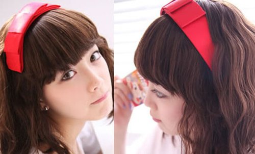 蓬松的齐刘海 蛋卷头,迅速地在韩国流行了起来,戴上红色蝴蝶结发箍,清纯可爱的小女孩形象立马显现,减龄效果毋庸置疑哦。