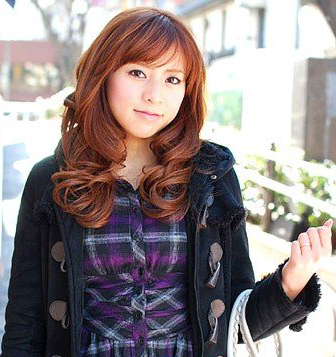 卷发有时会给人成熟稳重的感觉,的确如此,不过学习一下日本女生的减龄妙招吧,剪一个细碎的斜刘海,瞬间可爱度暴增,同时更是起到了减龄的效果。用大号卷棒烫出的卷发增添淑女感。