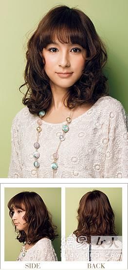 发型特点:两侧大波浪的卷曲配合蓬松的刘海 ,时尚、甜美、优雅。