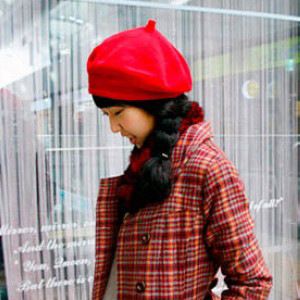 今年虽然是大热麻花辫,但有胆量梳这种又粗又整齐的麻花辫上街的MM实属少见,因为一个不小心就会变成要命的菜市场大妈,戴上一个鲜红色的画家帽是搭救妙法,立即没有大妈气息了