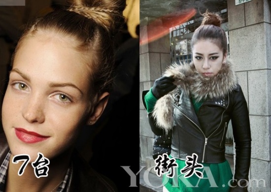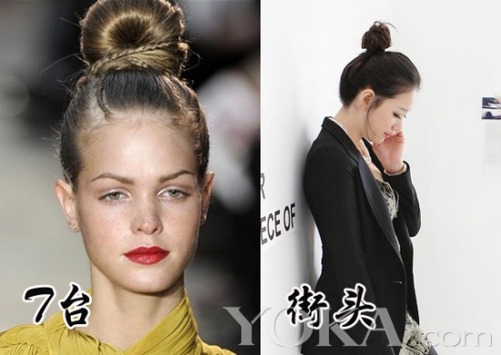 如果觉得团子太过单调,可以尝试欧美造型的方式,一根细细的编辫就可以为你的发型增色不少。