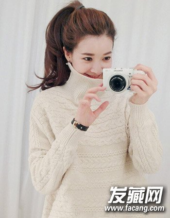 说到韩式无刘海发型怎么能少了这样一款简单而充满活力的韩式高马尾扎以呢?只是简单的将中长发进行高耸的马尾扎发,再配合时尚的棕栗色染发清新活泼魅力十足。