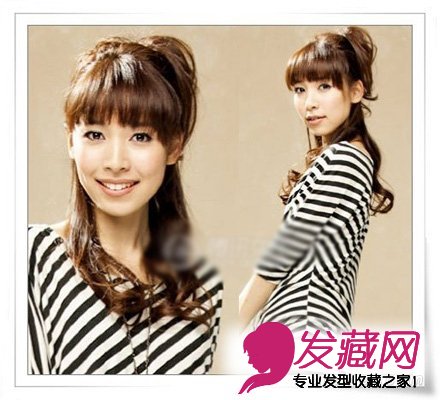 招数Tip:很多OL喜欢为波浪长卷发搭配长的齐刘海来减龄,在此基础上想要进一步增加活泼感、打破死板,可以尝试将耳朵两侧的头发向后汇拢,在一侧脑后与顶发结合扎成小马尾装饰!注意马尾不要扎太低,容易显得无精打采哦。