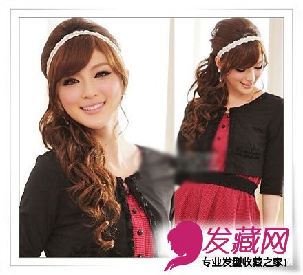 波浪歪马尾+蕾丝发箍 宴会名媛系