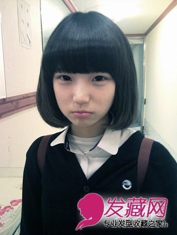 这一款齐刘海的波波头发型,大家有没有非常的熟悉呢?这一款基本的波波头短发,可是许多MM们小时候剪过的西瓜头的样板呢!非常呆萌可爱很适合学生。