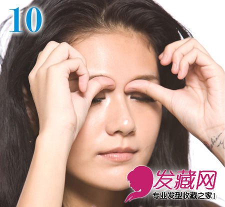 最后,拇指放在眼头凹陷处按压,并配合深呼吸。