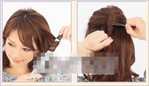 2. 将顶端的头发梳理拧好,稍微抬高一些用发卡夹好,营造立体感。