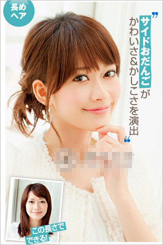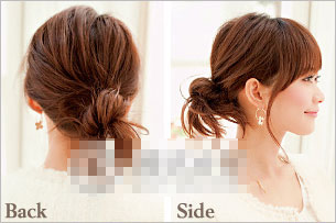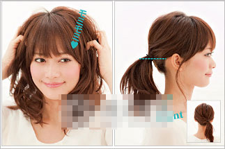 2.脸周留一小束头发,其它的头发扎好,高于耳朵平行线。将头发扎在右边,这样从正面看的话,就显的非常的可爱。