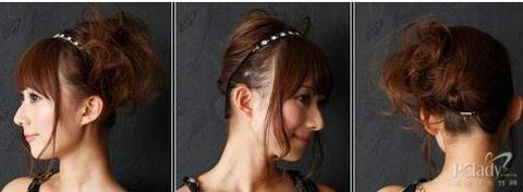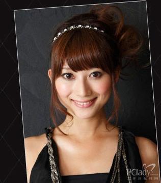 face line留下较厚的刘海,一边突出了重点一边也带来着小脸的效果,带出了柔软的气氛。在左面的背部侧面发尾处的松懈卷发感,试着加上小发带。