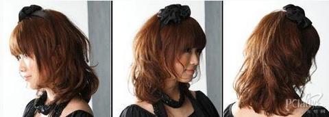 柔软的短发 ,配合中等长度的头发,并且强调卷发感,充分表现了有女人味的可爱。因为头发长度不够,因此加上发箍转移重点。卷发棒要设在略低的温度,来增强柔软感。