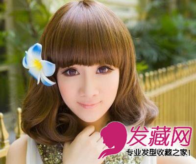 萌萌的平刘海设计,甜美又有公主范儿,黄色的染色和大内扣结合,看上去非常厚重,适合头发较少的MM,可以营造出发量超多的样子哦,还能重点突出你的大眼。