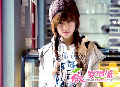 清爽随意的的麻花辫造型配合齐刘海发型,给人如邻家女孩儿般乖巧可爱,是非常适合学生MM的一款发型。