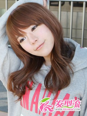 将上层发丝做出拉直效果,令秀发更具柔顺。斜刘海略显轻薄,发丝流向顺畅与卷发形成对比。发尾稍卷的弧度增加了造型感,没有夸张的曲线,适当加些棕色系挑染,就能令发型更显时尚,显现出MM可爱的脸型轮廓。